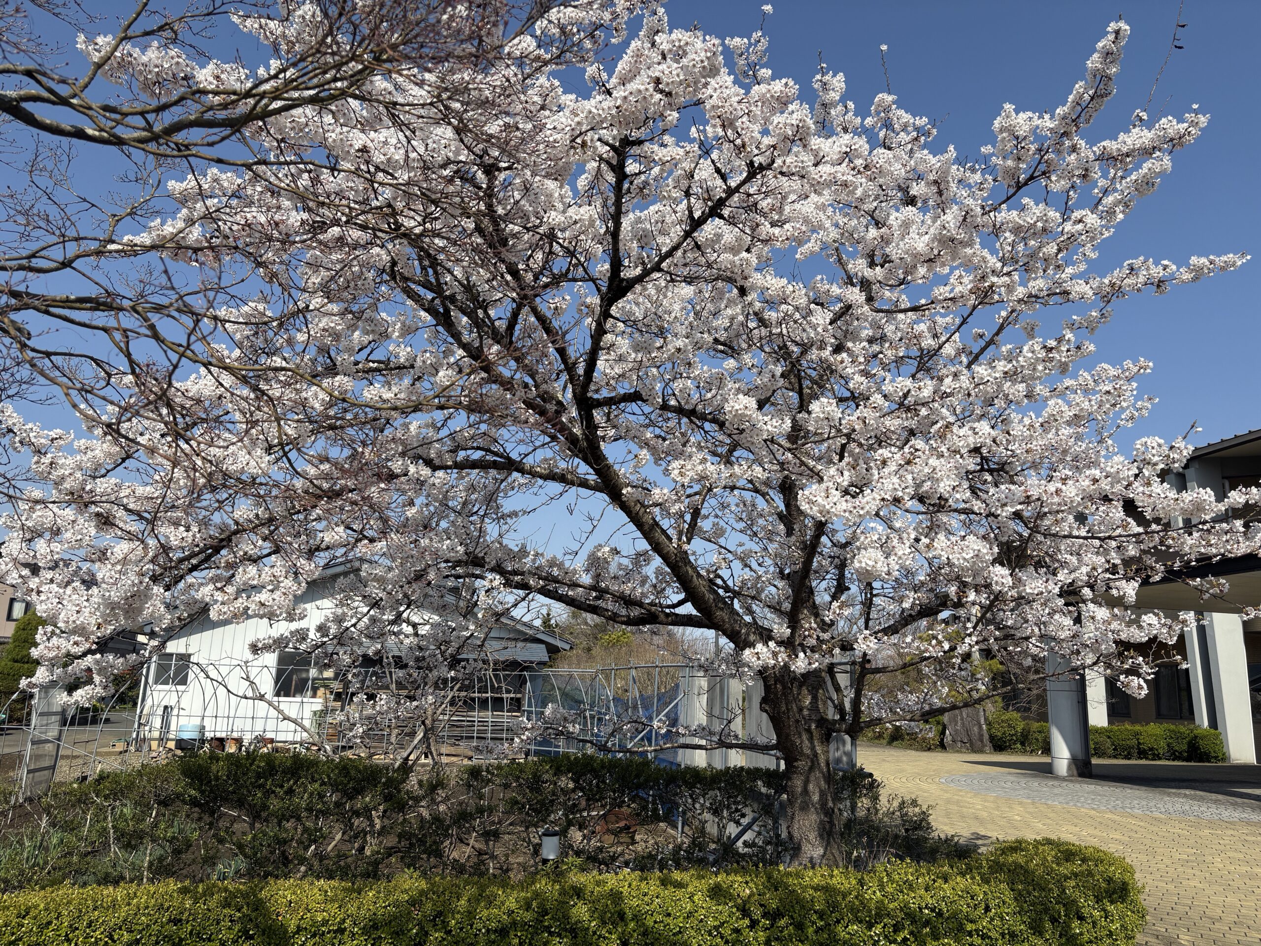 明けて今日17日は、昨日とは打って変わっての快晴。庭の満開の桜が青空に映え、職員が楽しそうに小規模お花見会の準備をしています。