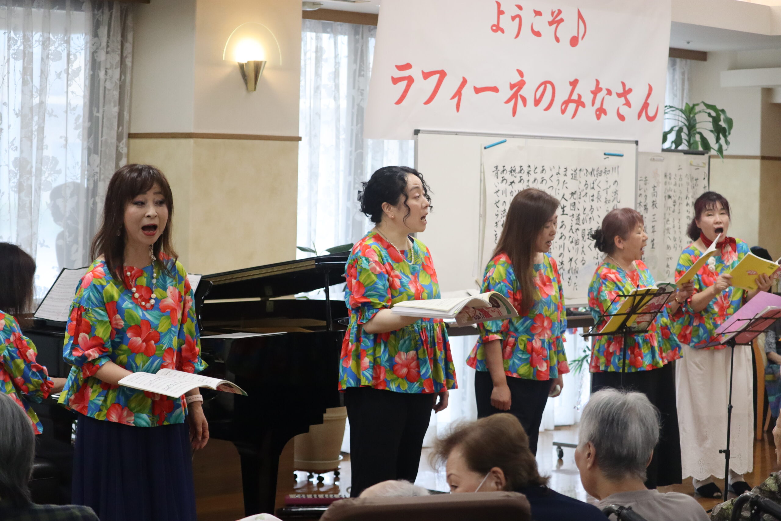 7月9日、盛岡の合唱サークル「ラフィーネ」のメンバー5名が来荘し、「七夕コンサート」が1階ロビーで行われました。