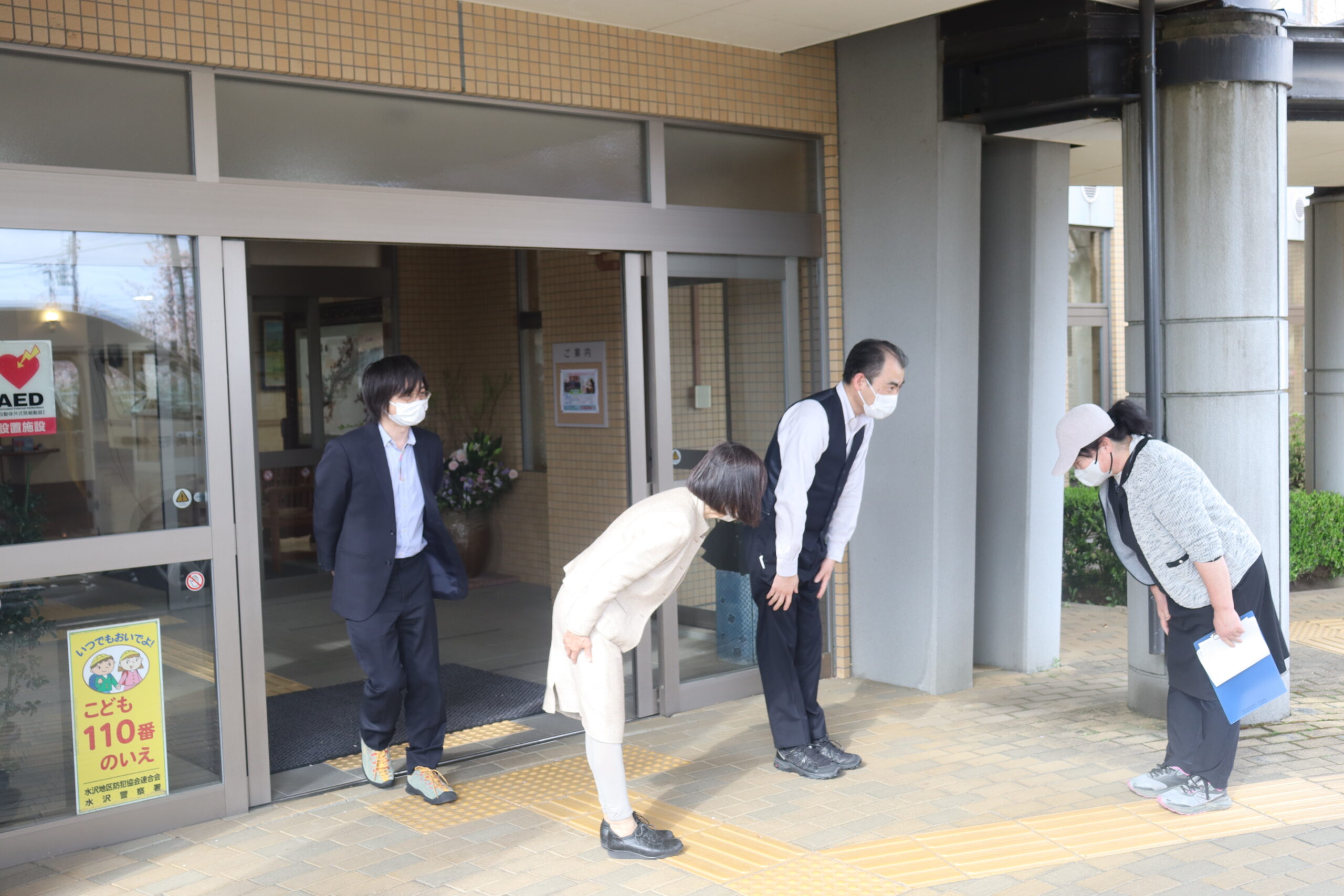 よく晴れた4月15日の午後、姉体小の生徒さん20人ほどが、引率の先生とともに福寿荘を訪れました。先生は生徒さんたちに「この施設は『子ども110番の家』になっています。何かあったら、立ち寄って助けてもらって下さいね」と話し、出迎えた施設長と常務理事は「どんな事でも、いつでも来てくれて大丈夫ですよ」と笑顔で答えました。生徒さんたちは声を揃えて「これからよろしくお願いします」と元気にあいさつし、それぞれの家へと帰っていきました。