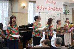 7月9日、盛岡の合唱サークル「ラフィーネ」のメンバー5名が来荘し、「七夕コンサート」が1階ロビーで行われました。 いらした皆さんは夏らしい衣装に身を包み、器楽演奏や「ふるさと」「青い山脈」といった懐か …